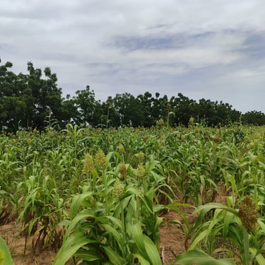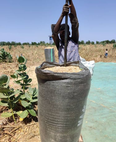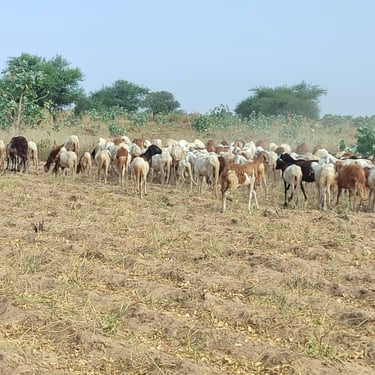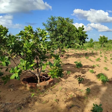 Nous produisons des légumes frais de saison, des cultures vivrières locales (mil, haricot, sésame), des arbres fruitiers (manguiers, agrumes, moringa) et élevons des ovins, caprins et volailles — dans un équilibre parfait entre l’homme, la nature et l’innovation.
