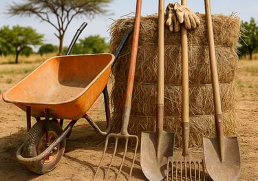 Renouvellement des outils agricoles : brouettes, pelles, râteaux, etc.